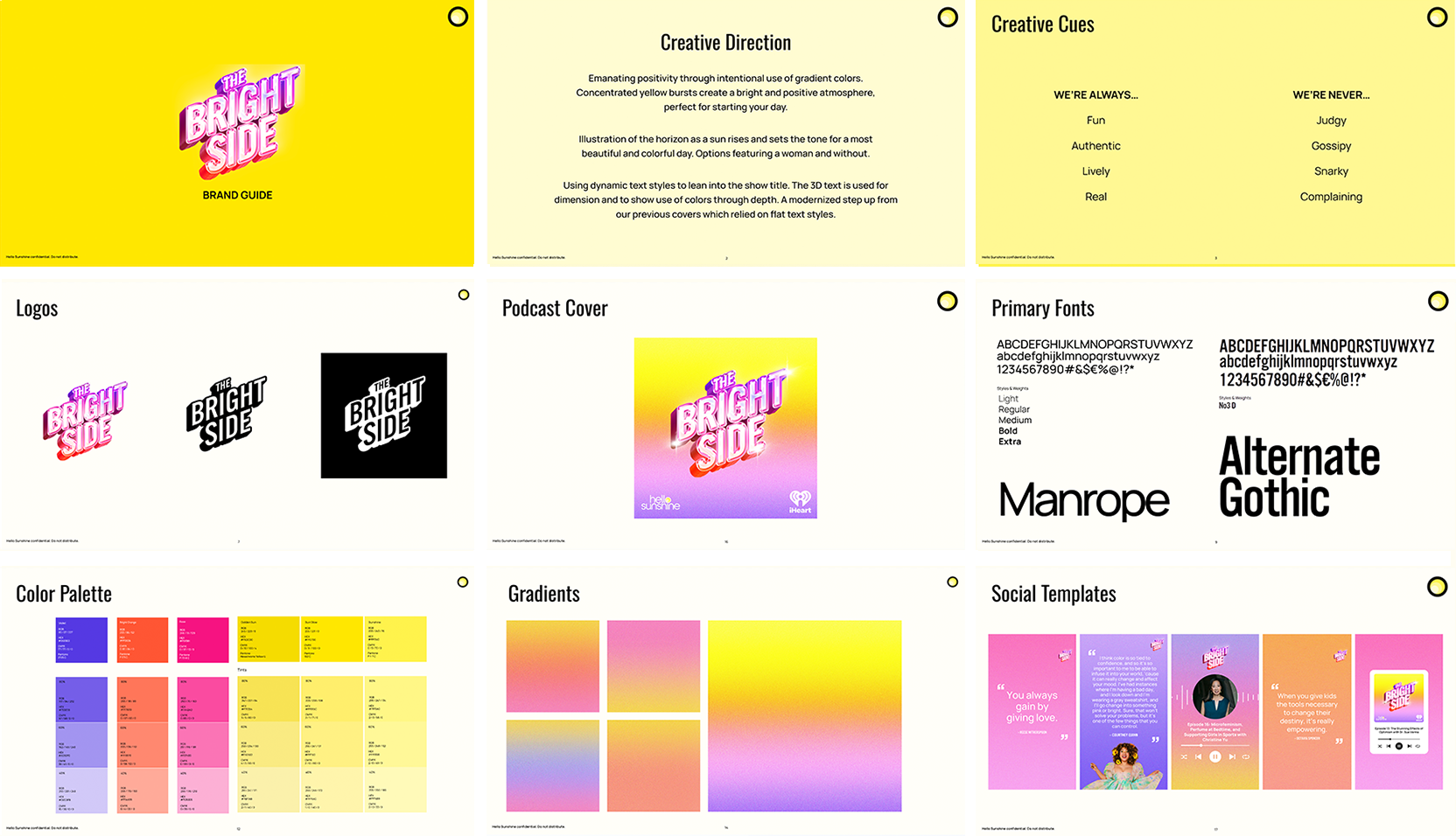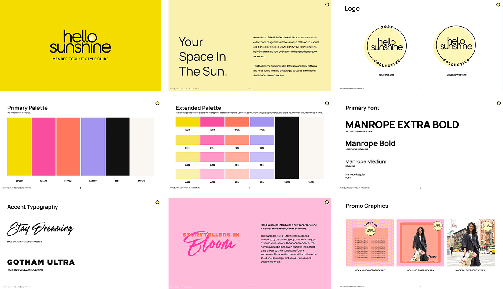 Created, updated and maintained style guides on a rolling basis for multiple lines of business within Hello Sunshine and ensured brand guidelines were followed when working with internal teams, freelancers, and vendors.