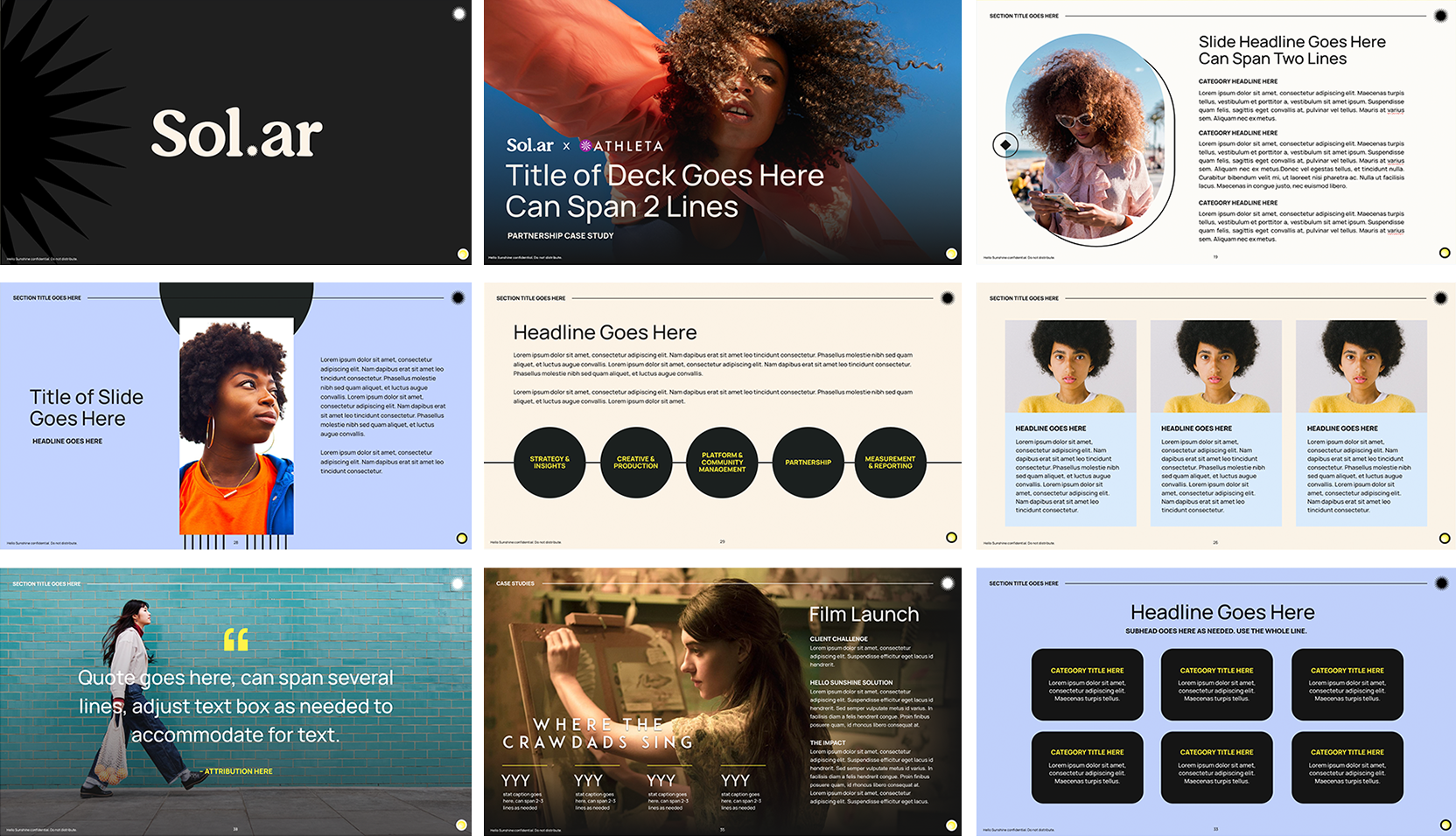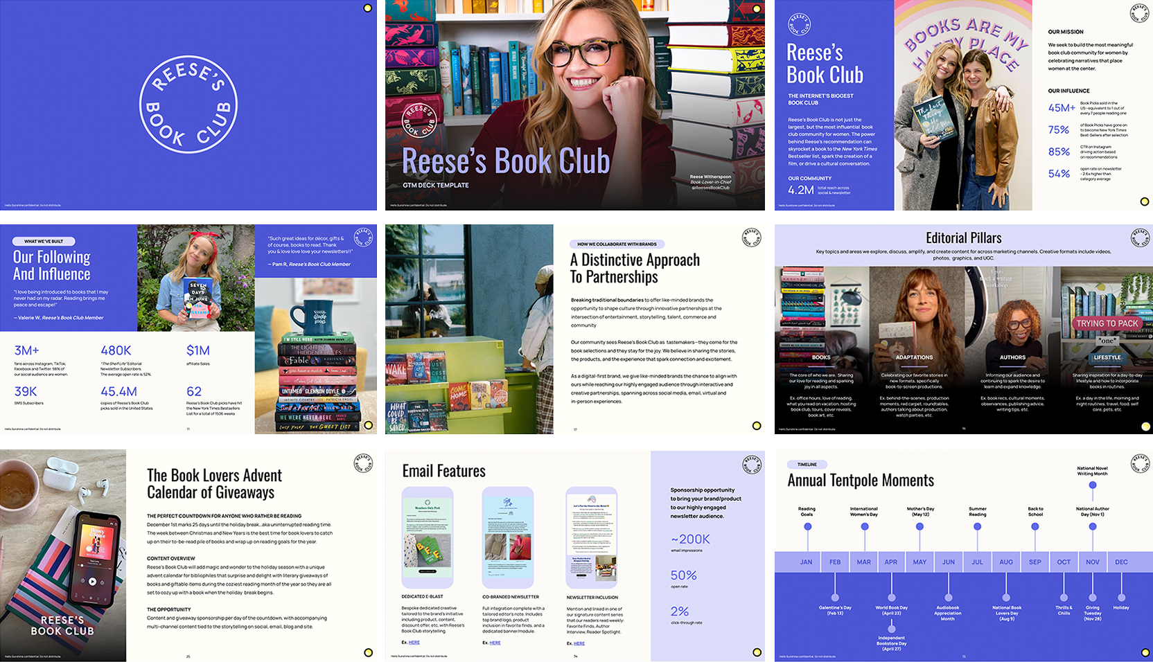 Created deck toolkits & templates for all Hello Sunshine lines of business and initiatives prioritizing company-wide useability and accessibility for pitches, wrap reports, corporate reports and GTM initiatives (both internal and outward-facing).